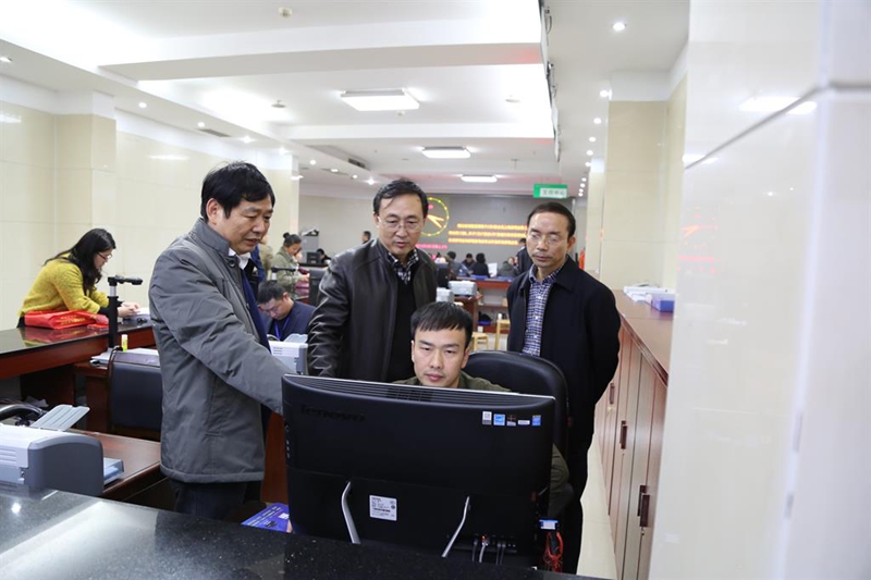 国家土地督察武汉局专员唐世力一行在吴友安市长陪同下,于11月18日下午到我中心督察,调研我中心不动产统一登记制度的落实情况。他们着重了解了我中心平台建设情况和档案管理情况,对我中心能和房产部门做到数据共享给予了高度评价。
