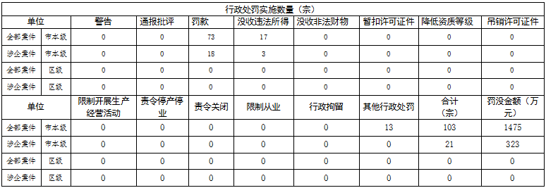 (一)2025年行政处罚实施情况统计表